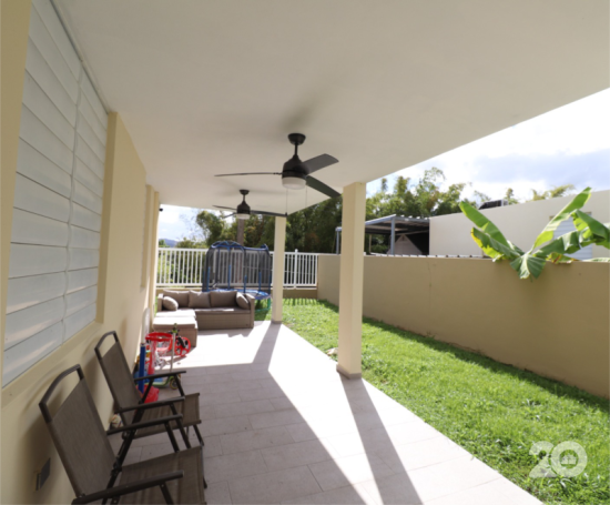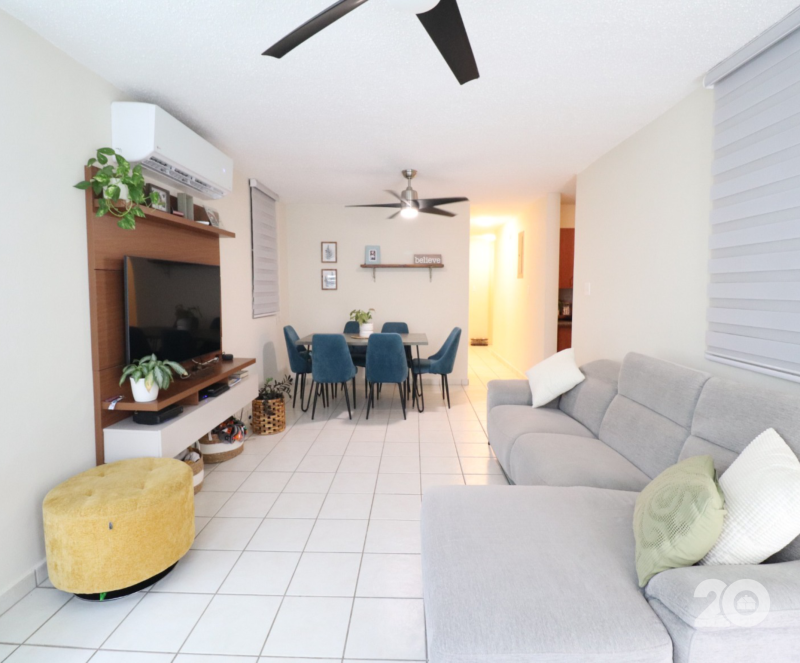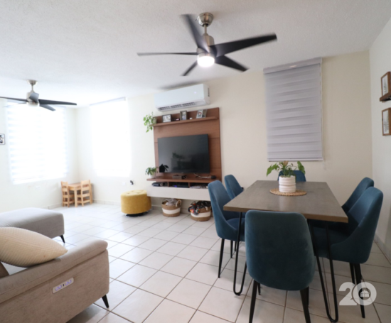 Hermosa propiedad terrera la cual consta de 3 habitaciones, 2 baños, sala, cocina, comedor, laundry, marquesina doble, terraza y patio!!! Incluye nevera, estufa, lavadora, secadora, microonda/extractor, abanicos, cortinas, 4 aires inverters, calentador, cisterna de agua y sistema de placas solares con batería tesla!! Facilidades acceso controlado, parque pasivo, gazebo y cancha de baloncesto!!! Disponible a partir de abril. Utilidades de Agua y Luz aparte.